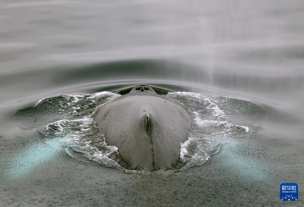 12月15日,在南极洲,一只座头鲸浮出水面。