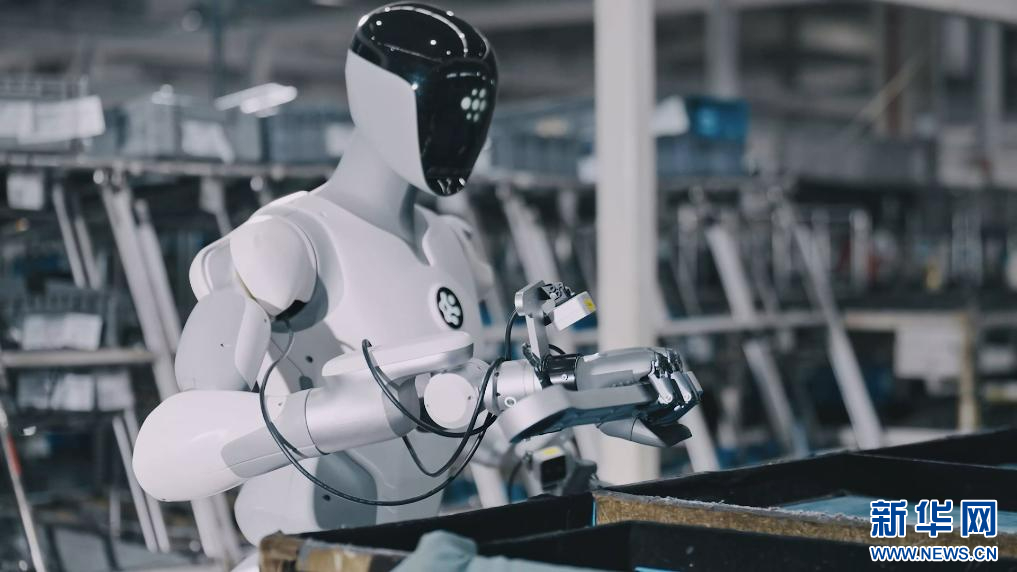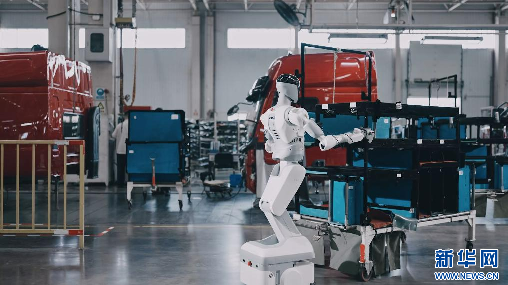 人形机器人给挡风玻璃贴标签。新华网发(智平方 供图)