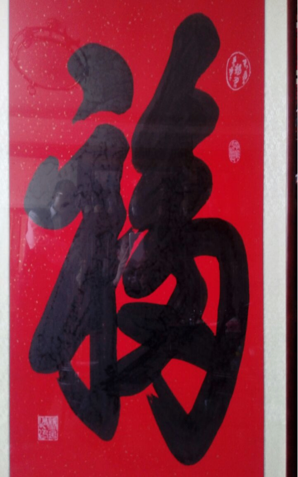 福字在写法上暗含"子、田、才、寿、福" 五种字形,寓意"多子、多田、多才、多寿、多福",从书法角度看,将数个字合为一体却流畅自然,已属罕见,更为珍稀的是,这也是世上惟一的"五福合一"、"福寿合一"之"福",它又被称为"长寿福"和"天下第一福"。