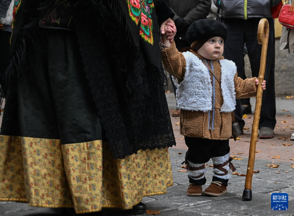12月14日,在西班牙首都马德里,小朋友参加音乐巡游。