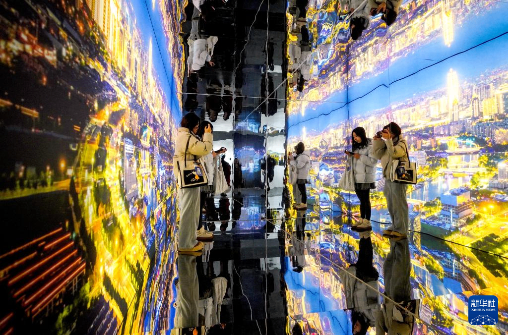 1月2日,家长和小朋友在贵州省贵阳市贵州科技馆体验奇幻元宇宙。