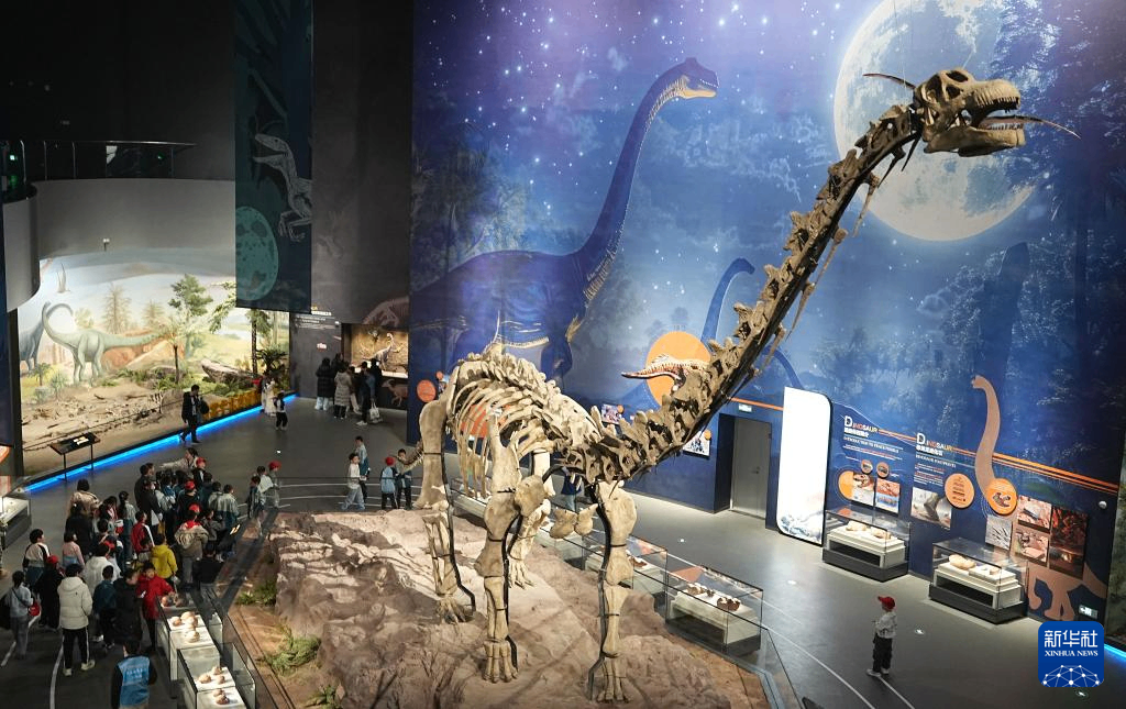 1月2日,游客在河北地质大学博物馆参观恐龙化石。