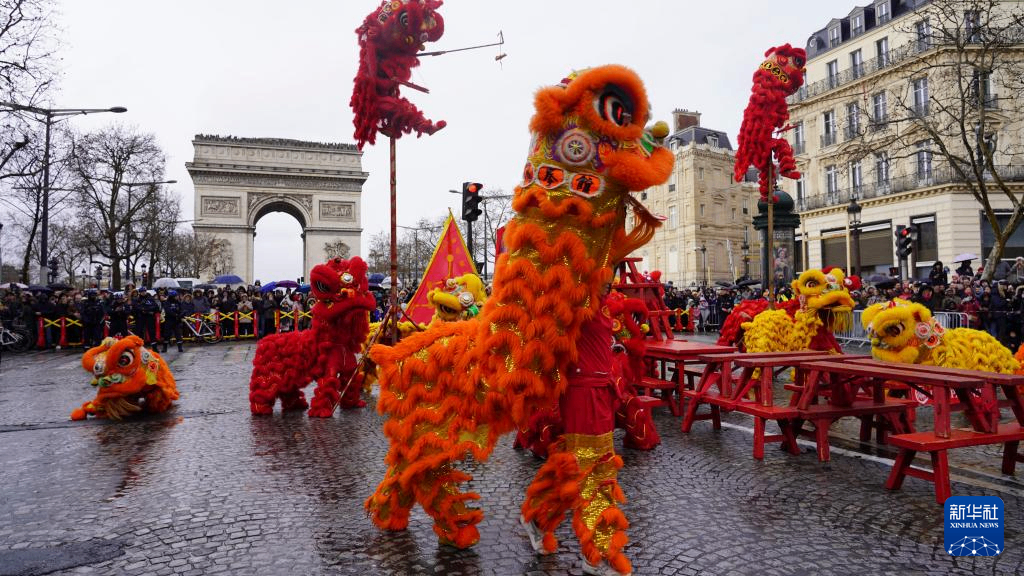 “欢乐春节满巴黎·龙狮贺岁舞香街”春节巡游活动2月1日在巴黎香榭丽舍大街举行,庆祝即将到来的农历春节。这是该活动第四次亮相香榭丽舍大街,由机器人引领的春节巡游表演方阵和紧随其后的舞龙舞狮、民族舞等传统表演,吸引了大街两侧的巴黎市民和游客驻足观看。