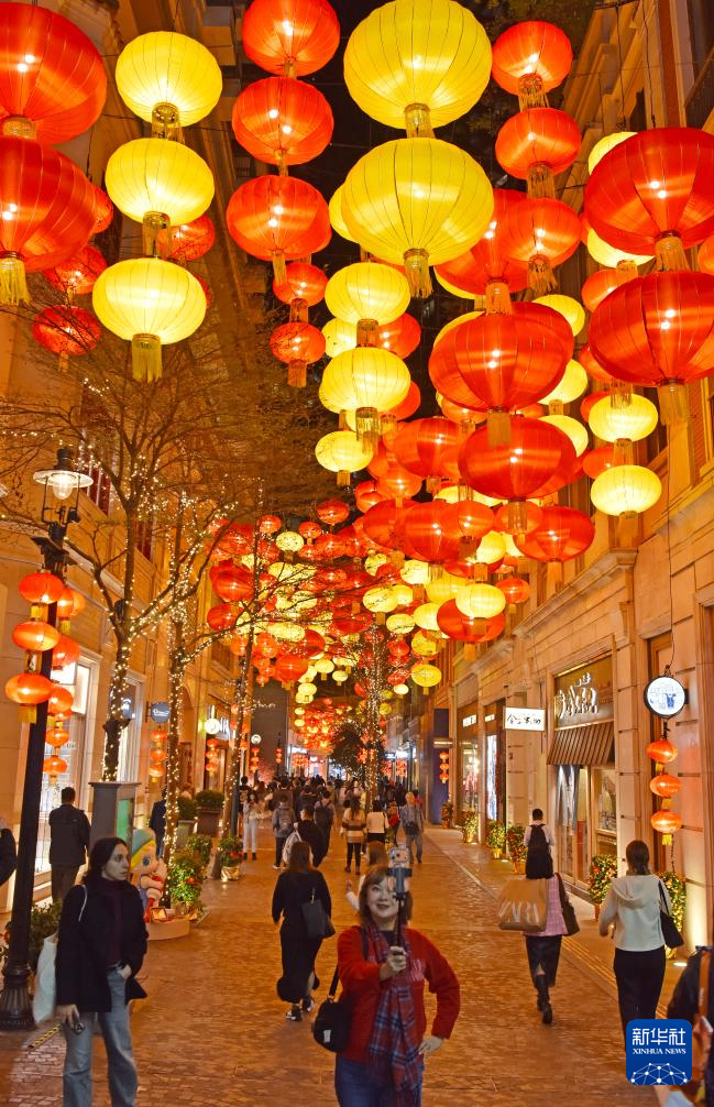 春节临近,香港利东街挂满大红灯笼,一派喜庆气氛。