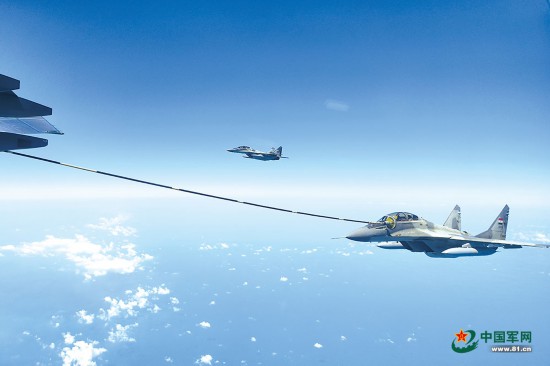 此次联训中,我运油-20飞机和埃及空军米格-29战机进行空中加油训练。余红春 摄