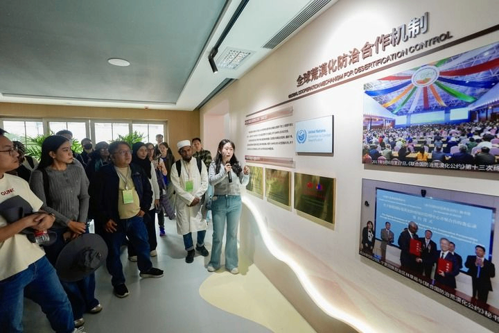 近年来,中国为全球贡献了约25%的新增绿化面积,超过一半来自“三北”地区的新造林种草。作为最早加入《联合国防治荒漠化公约》的国家之一,中国积极承担国际责任,成立中阿、中蒙、中国—中亚等干旱和荒漠化治理国际合作平台,在蒙古国、中亚、非洲等地建立治沙示范基地;支持二十国集团落实《减少土地退化和加强陆地栖息地保护的全球倡议》,推动东北亚防治荒漠化、土地退化和干旱网络开展区域合作。通过组织国际研修等方式,中国年均为亚非拉发展中国家培养近百名治沙骨干。