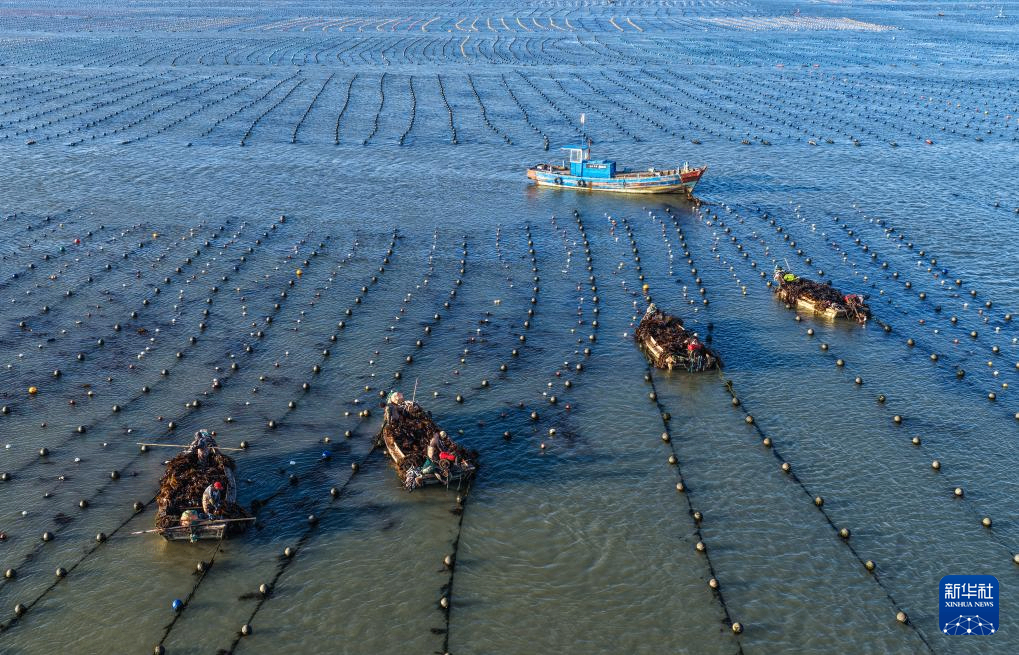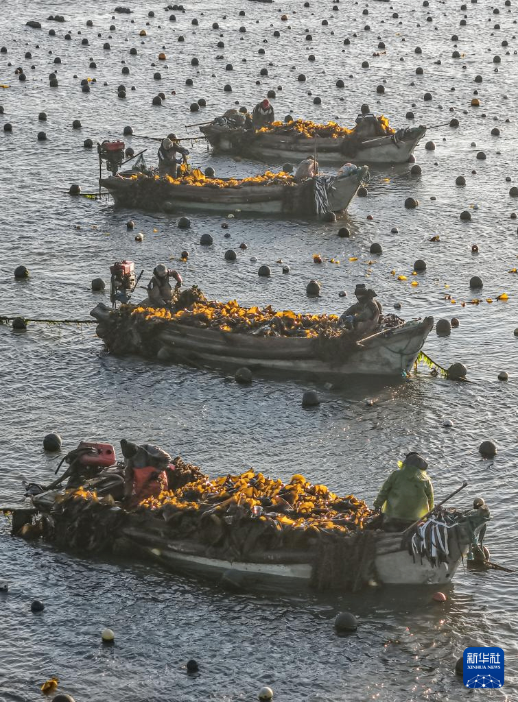 眼下,在我国海带主产区山东省荣成市,海洋牧场海带养殖区一派繁忙景象。养殖户对近岸养殖区达到成熟标准的海带分批收割,为后期收割的海带留出生长空间,以便提高海带产量和质量。