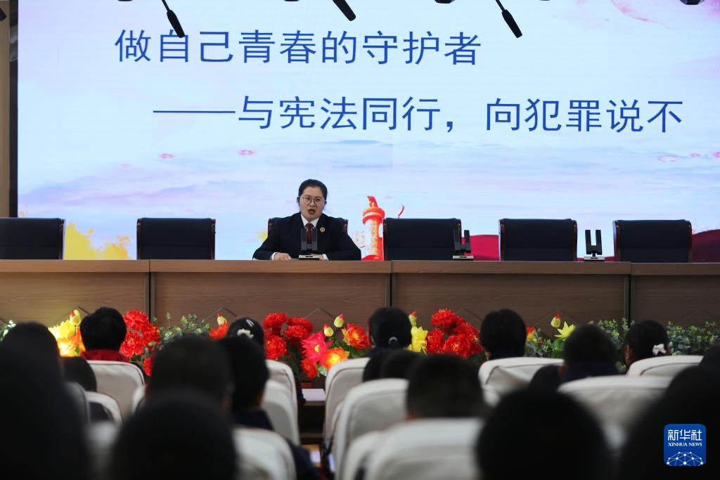 12月2日,甘肃省定西市安定区人民检察院的检察官在中华路学校进行宪法相关知识宣讲。
