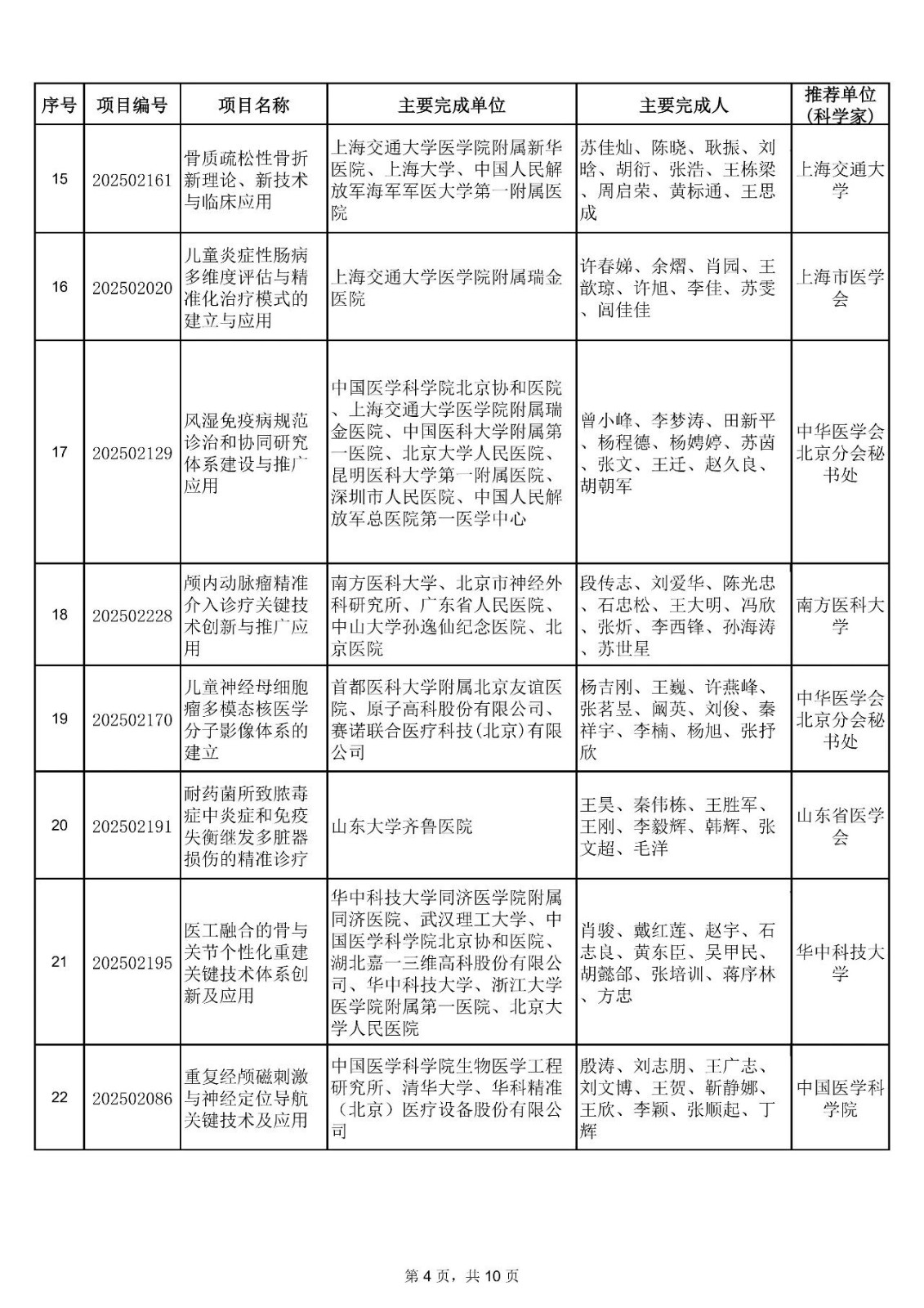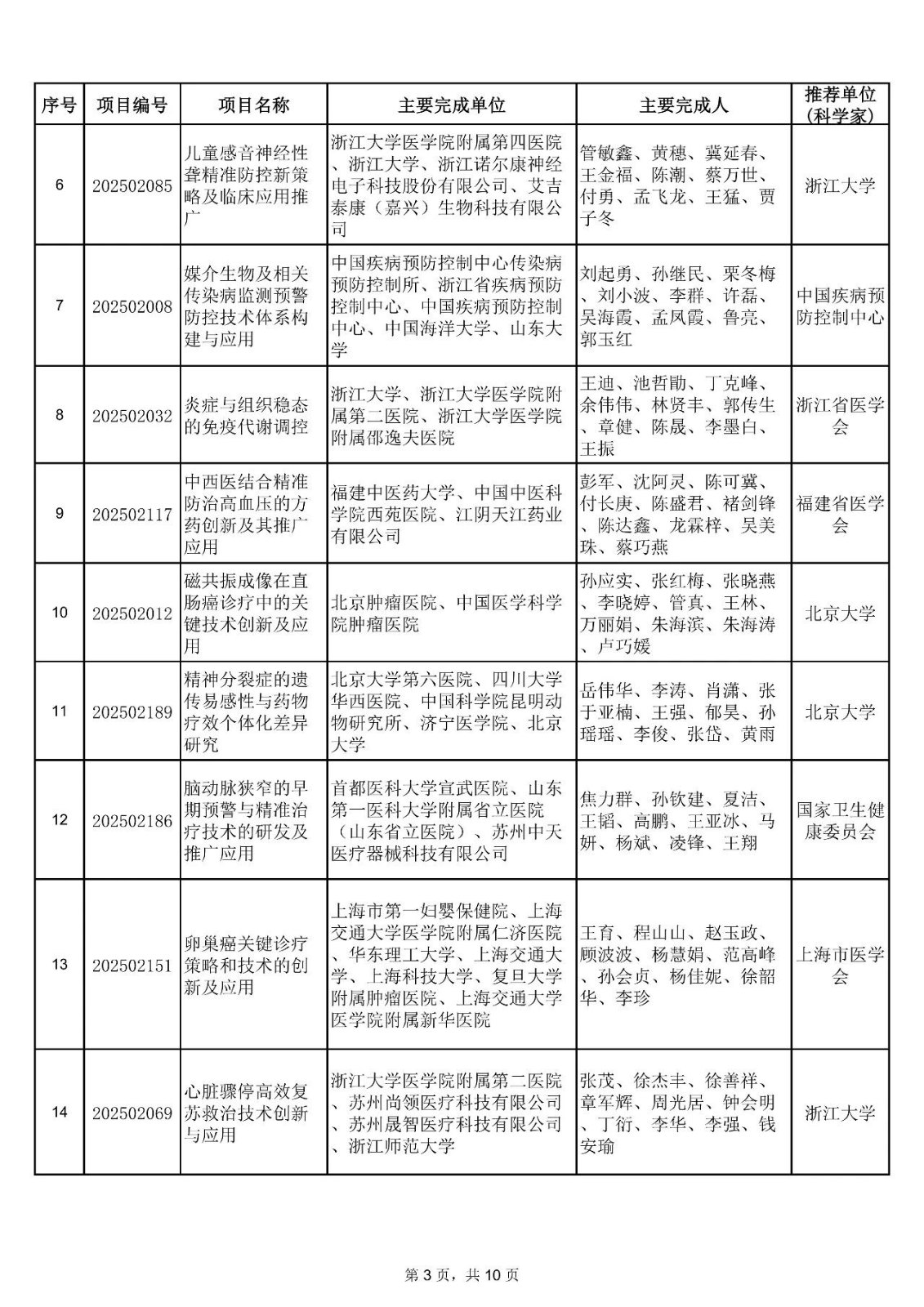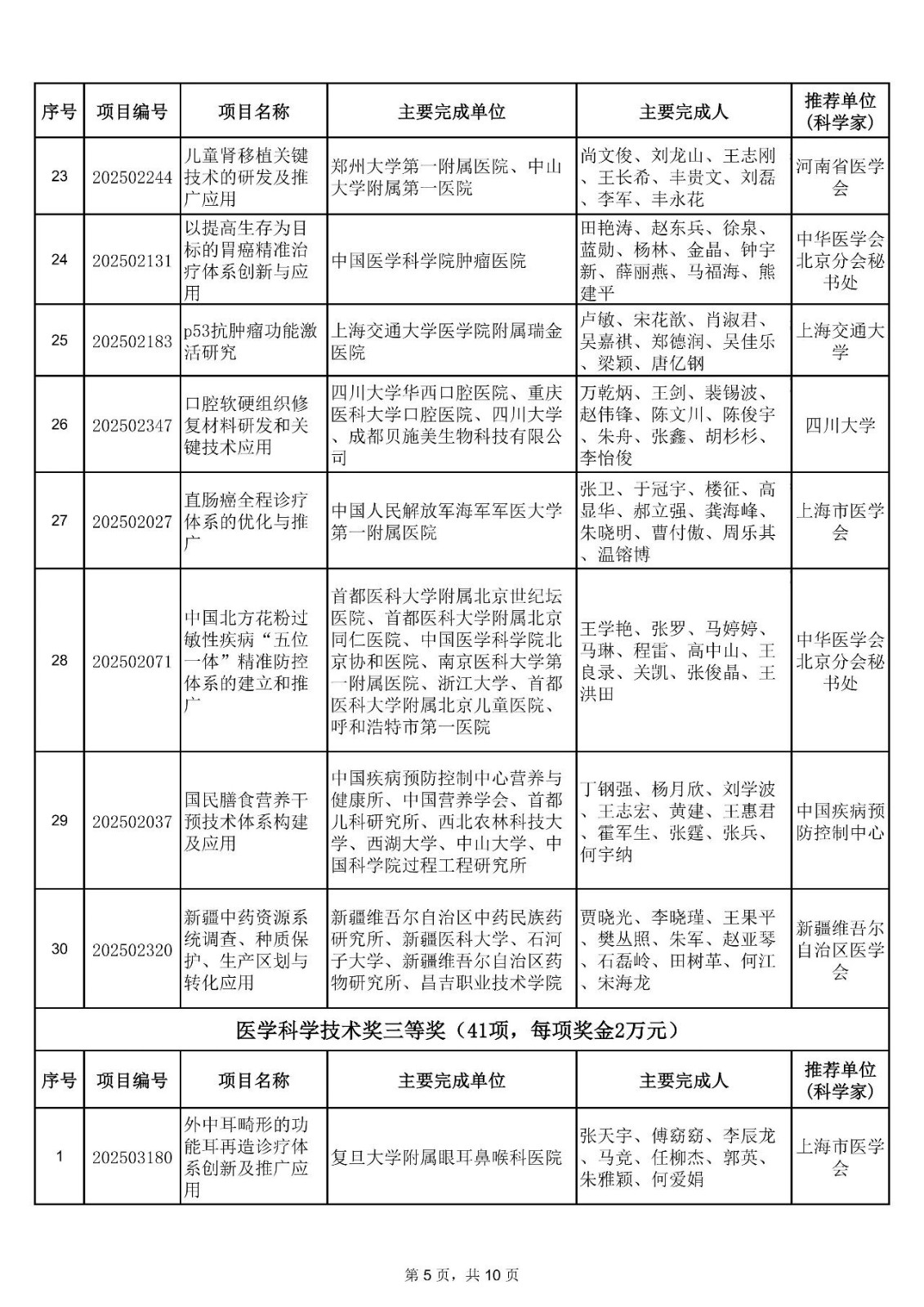 附件:2025年中华医学科技奖获奖项目