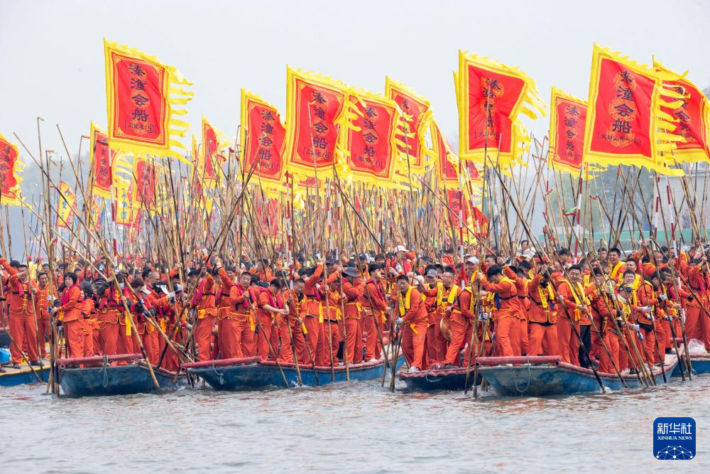 4月6日,2026年泰州姜堰溱潼会船节在江苏省泰州市姜堰区溱湖国家湿地公园开幕,数百条各式船只和上万名会船选手飞篙走桨,奋勇争先,演绎历久弥新的民俗画卷。