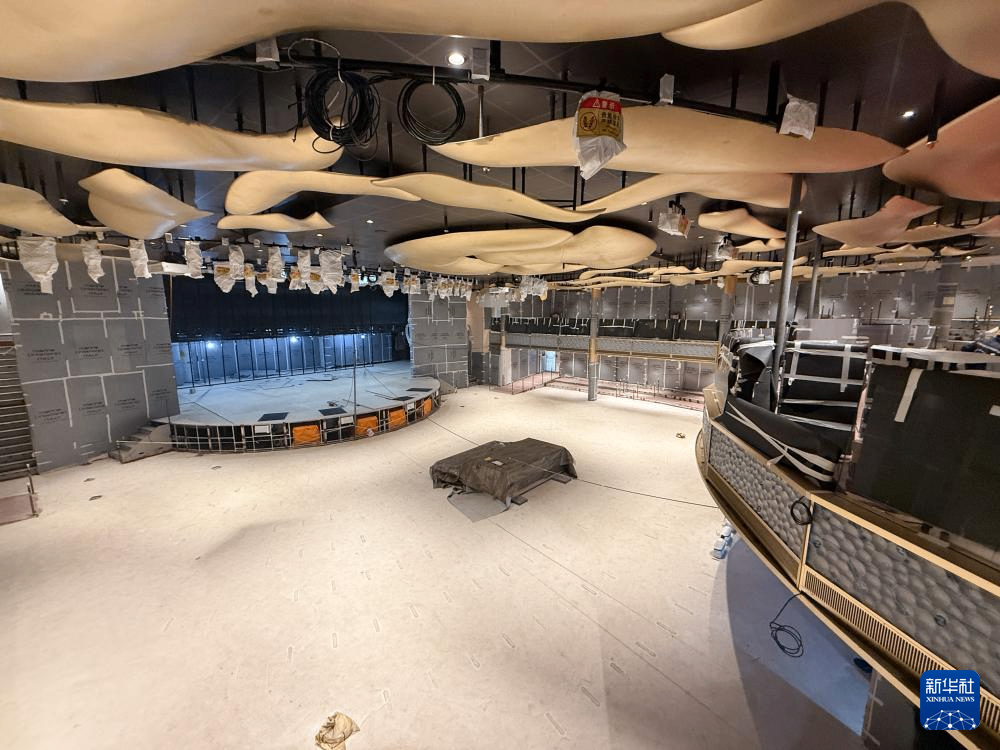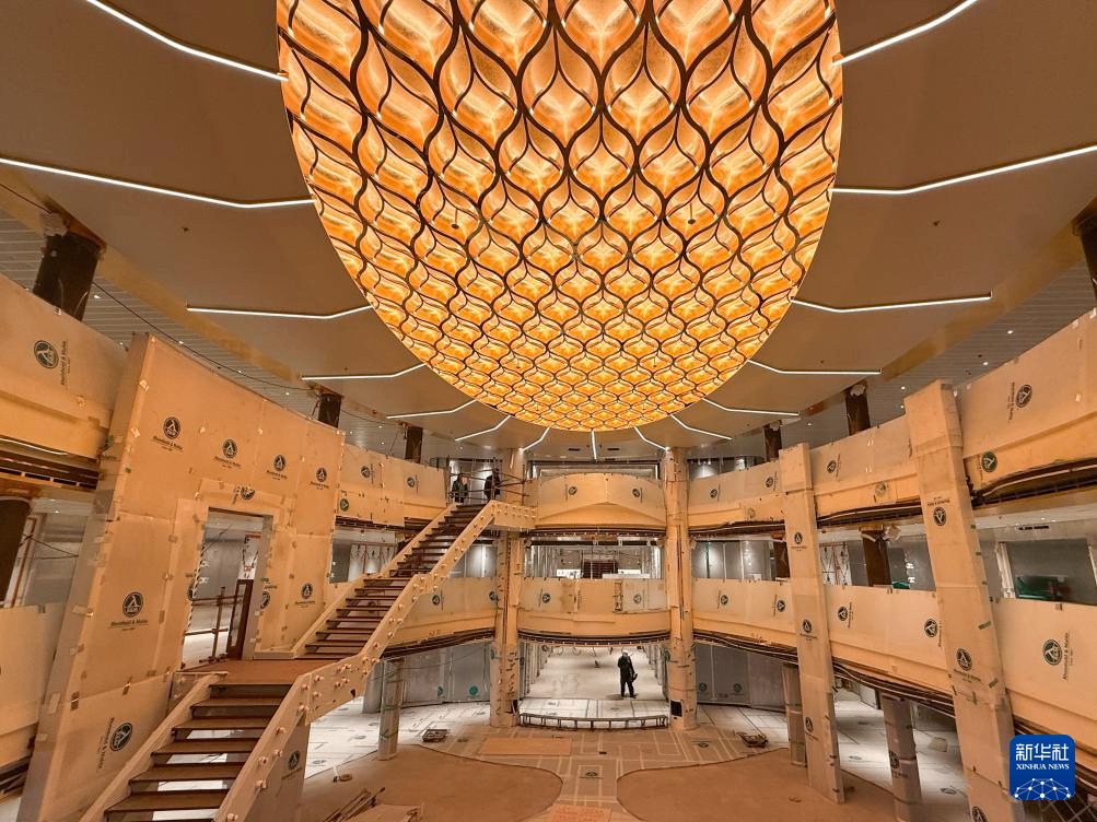3月16日拍摄的第二艘国产大型邮轮“爱达·花城号”船舱内部,内装工程仍在进行中。