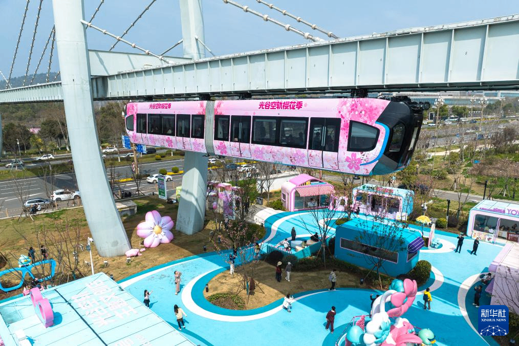 3月23日,游客乘坐空轨列车游览。